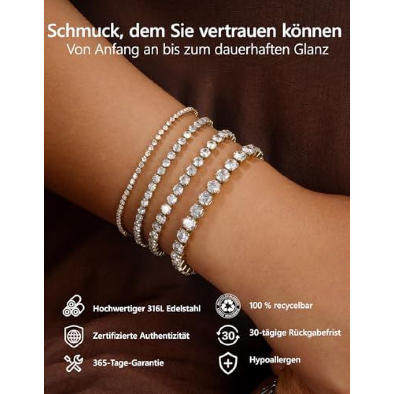 KRKC Moterų reguliuojama teniso apyrankė, 2/3/4/5 mm pločio, 316L nerūdijančio plieno balto aukso / 14K geltonojo aukso, aukštos kokybės kubinio cirkonio apyrankė, dovana draugei ir motinai