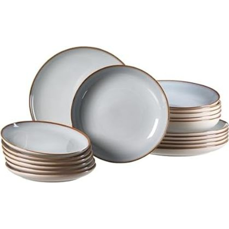 "Ritzenhoff & Breker Portofino" 18 dalių pietų servizas su spalviniais perėjimais, 6 x vakarienės / sriubos ir deserto lėkštės, skandinaviško dizaino, su reaktyvine glazūra, akmens masės, mėlynai pilkos spalvos