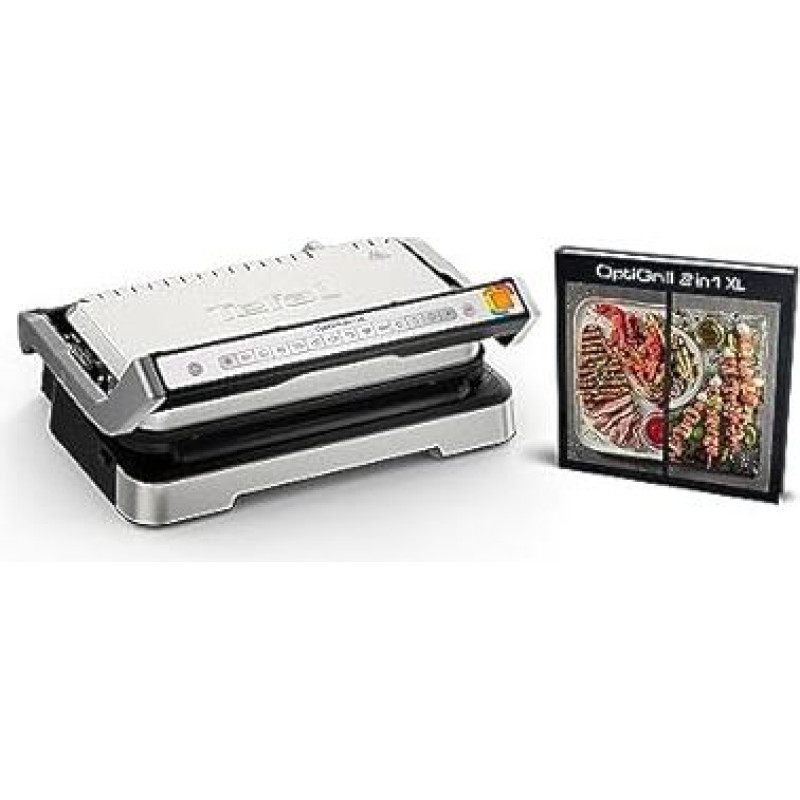 "Tefal OptiGrill 2-in-1 XL" kontaktinis grilis, atlenkiamas, stalo grilis, 12 programų, kepimo lygio rodmuo, išimamos XL plokštės, elektrinis grilis, GC782D10