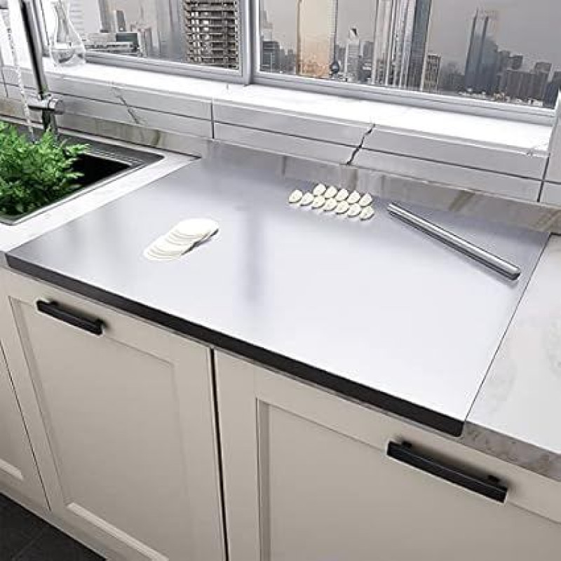bimiti Nerūdijančio plieno pjaustymo lentos "Worktop Saver" 80x50cm itin didelė pjaustymo lenta "Worktop Saver" konditerijos lenta Kepimo lenta su lūpomis ir kočėlu