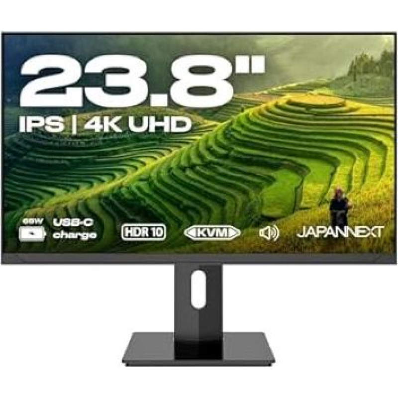 "JapanNext" 23,8 colių IPS 4K UHD (3840x2160) monitorius | USB-C įkrovimas (65 W) Reguliuojamas aukštis ir pakreipimas (HSP) Integruotas garsiakalbis | sRGB 100% G-Sync/FreeSync | JN-IPS2380UHDR-C65W-HSP