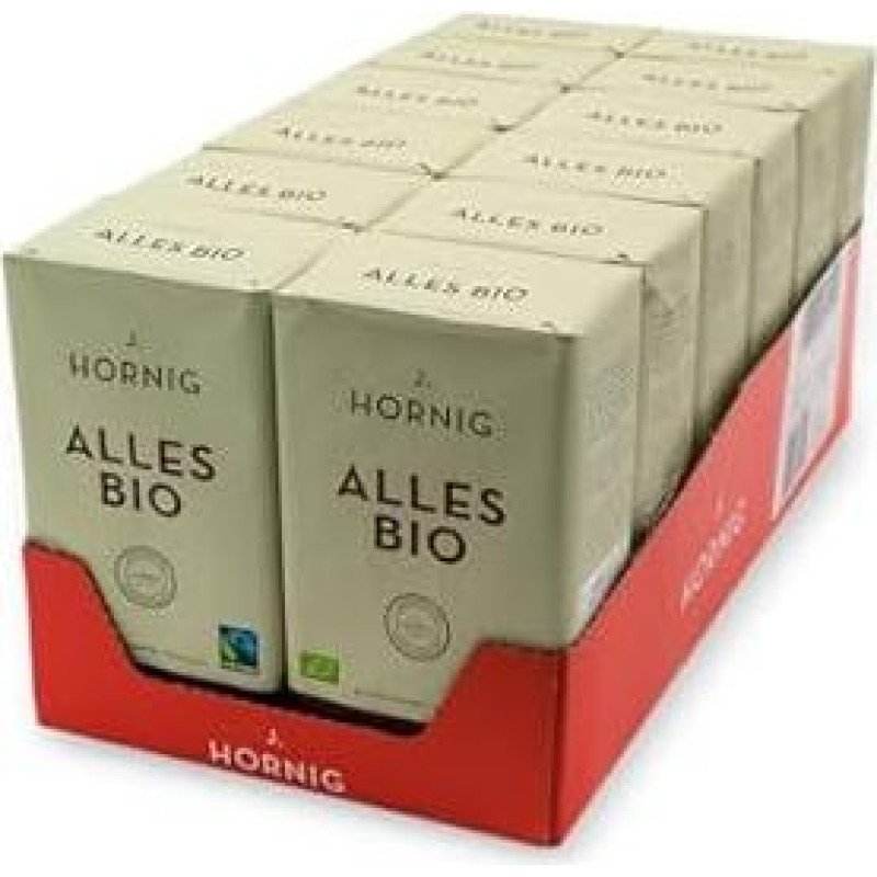 "J. Hornig" malta ekologiška ir sąžiningos prekybos kava, 12 x 500 g, intensyvaus aromato ir stipraus skonio, malta kava filtruojamai kavai, prancūziškam spaudimui ir espreso kavos aparatui