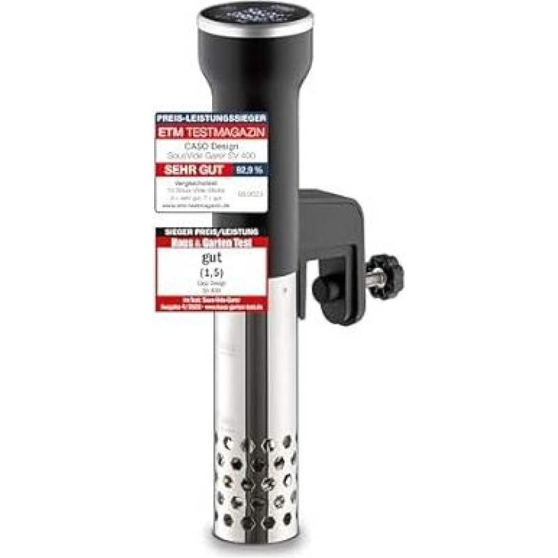 CASO SV400 "Sous Vide" lazdelė, testo "House & Garden Test" nugalėtoja, "Sous Vide" lazdelė iki 20 l talpos indams, "Sous Vide" viryklė, 25-90 °C temperatūra 0,5 °C pakopomis, IPX7, erdvę taupantis dizainas