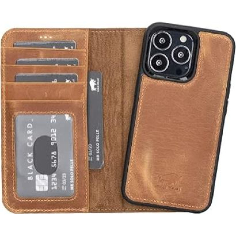 "Solo Pelle" odinis dėklas, suderinamas su "iPhone 13 Pro" 6,1 colio nuimamu dėklu (2-in-1) su kortelių lizdais, skirtas originaliam "Apple iPhone 13 Pro" (kupranugario rudos spalvos)