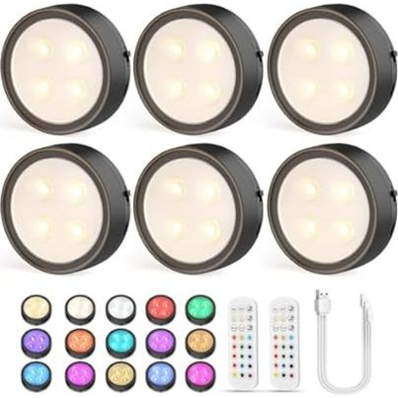 "Onumii" USB įkraunamas LED apšvietimas, baterijų spintelės apšvietimas su nuotolinio valdymo pulteliu, magnetinis belaidis spintelės apšvietimas, reguliuojamas, skirtas spintai, drabužinei, virtuvei, miegamajam (6 vnt.)