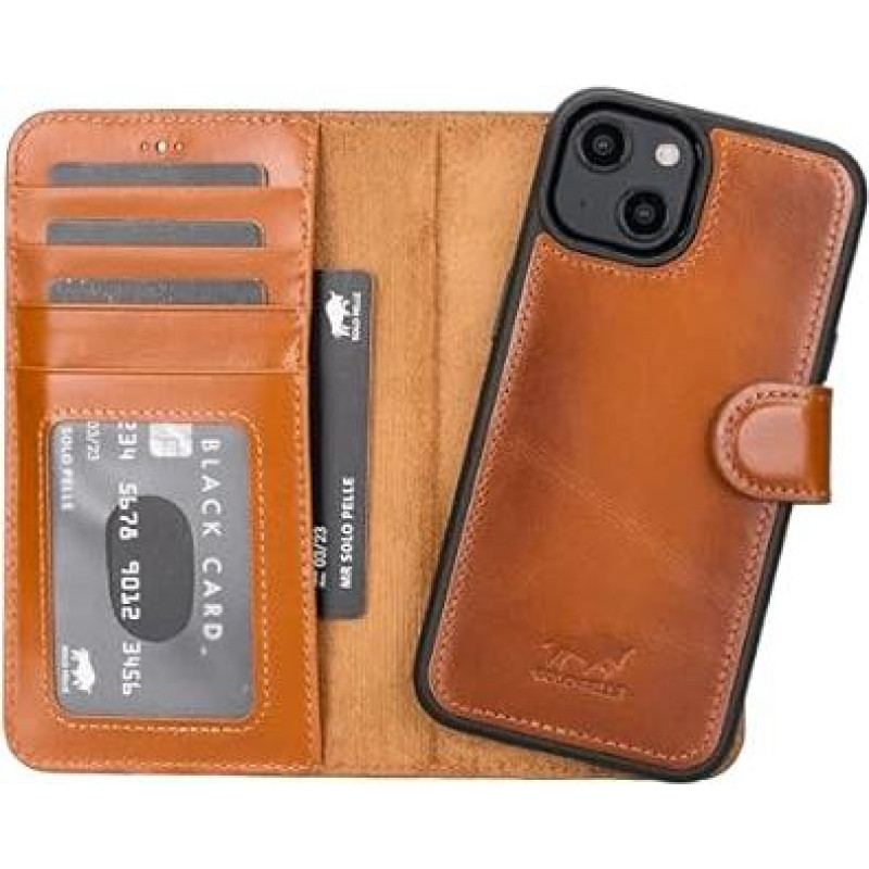 "Solo Pelle" odinis dėklas, suderinamas su "iPhone 15" 6,1 colio įstrižainės nuimamu dėklu (2-in-1) su kortelių lizdais, skirtas originaliam "Apple iPhone 15" (konjako rudos spalvos)