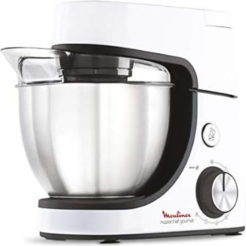 "Moulinex" virtuvinis kombainas, daugiafunkcinis virtuvinis kombainas "Essential", 800 W, 6 greičio nustatymai, nerūdijančio plieno dubuo, 4,8 l, kepimo rinkinys XL, 32,42 x 25,74 x 42,44 cm, baltos spalvos