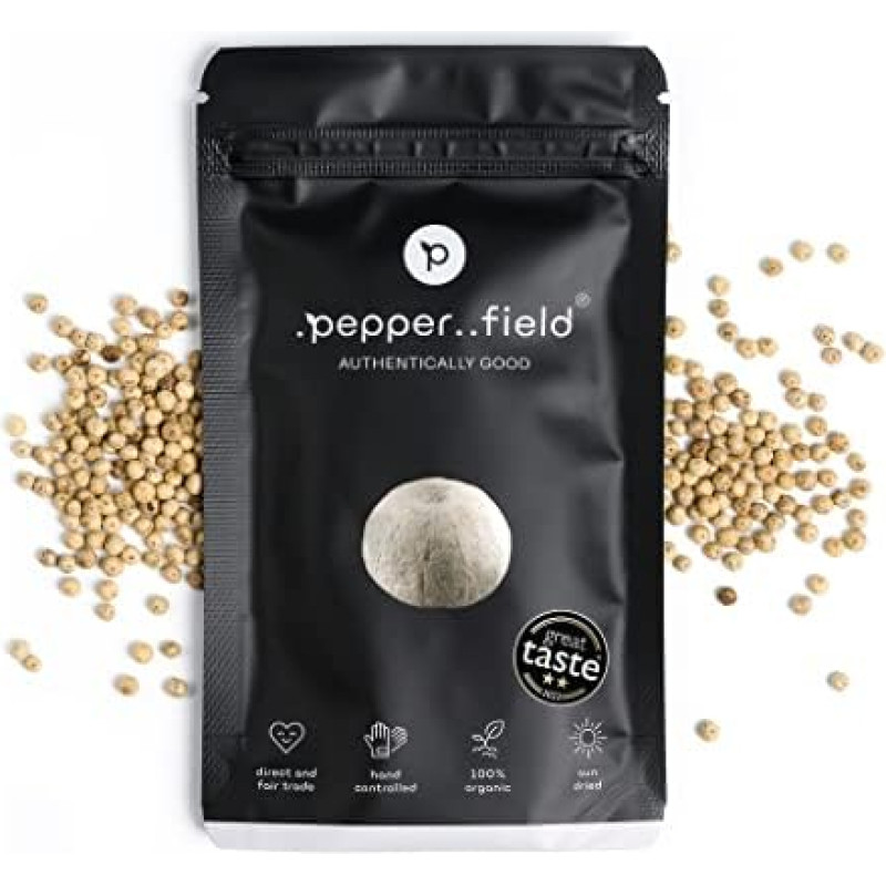 "Pepper Field Kampot Pepper White" - baltieji pipirai - 100% tikri baltieji pipirai iš Kampoto, Kambodžos, SGN - balti pipirai - pipirai malūnėliui ir pipirų malūnėliui malti (50 g)