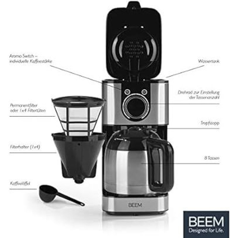 BEEM FRESH-AROMA-SWITCH filtruotas kavos aparatas - terminis | Nerūdijantis plienas | 1 l termosas | Stilingas valdymo ratukas | 24 valandų laikmatis | 800 W | 4-8 puodeliams