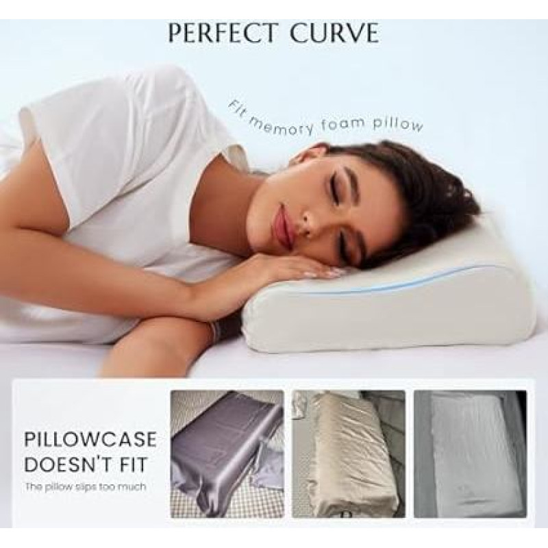 THXSILK 19 Momme šilkinis šilko užvalkalas pagalvei su atminties putų kontūru, lateksu ir kaklo srities pagalvei - hipoalerginis, skalbiamas (61 x 35,6 x 12/10 cm, natūraliai baltas)