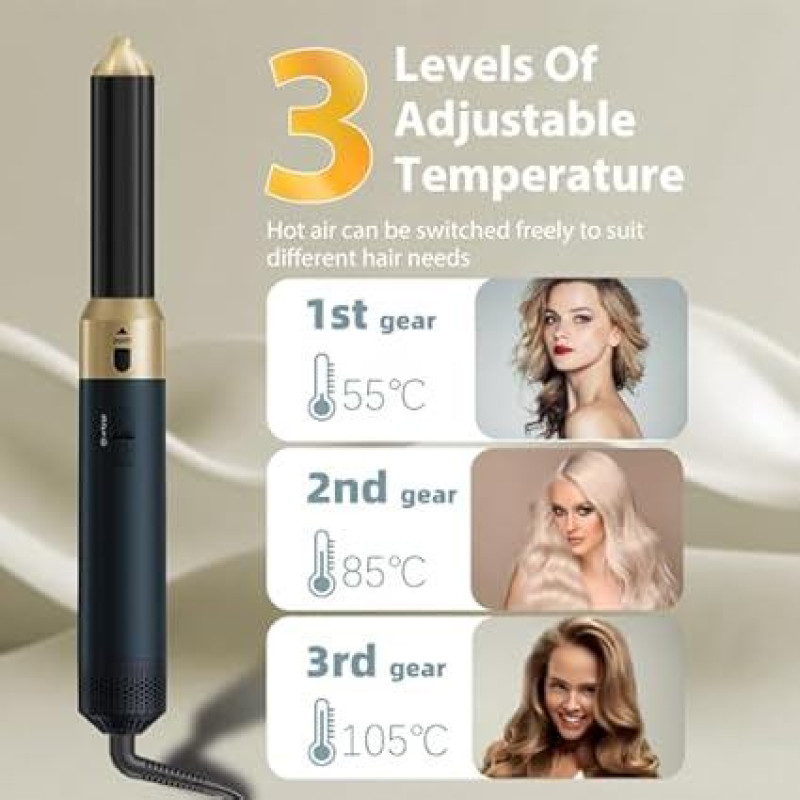 5 in 1 Hairstyler, 1000W Multifunktions Warmluftbürste mit 5 Zubehörteilen, 3 Temperaturen, 360° Schwenkbares Heckdesign, Hairstyler zum Haareaufplustern, Trocknen, Glätten, Locken,Blau