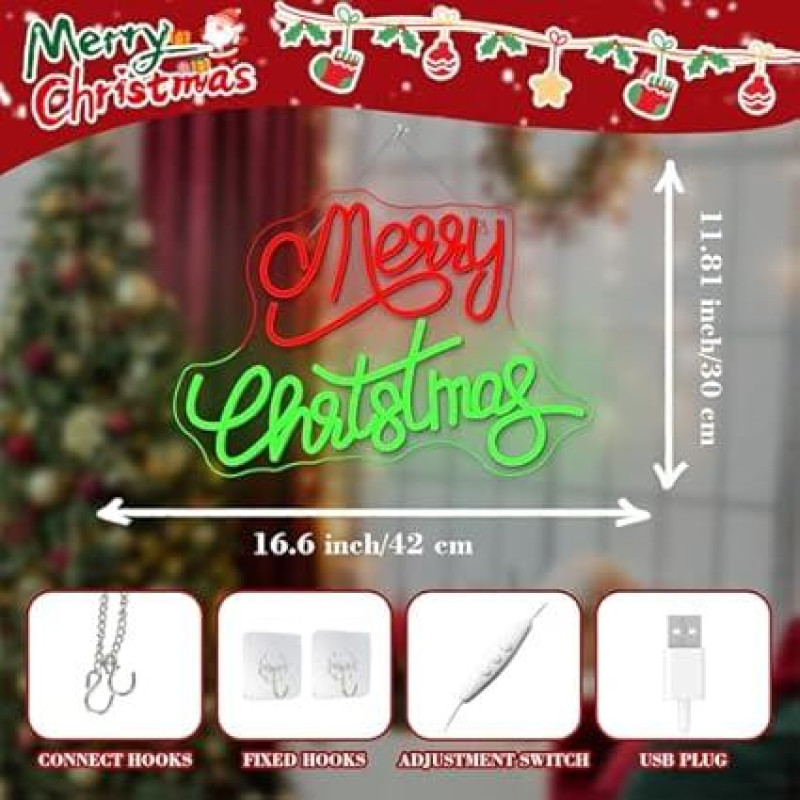Linksmų Kalėdų neoninis ženklas Raudonos ir žalios raidės Kalėdų neoniniai žibintai Linksmos Kalėdos Dimmable Akrilo neoninė šviesa su jungikliu Naujiena Apšvietimas sienų dekorui