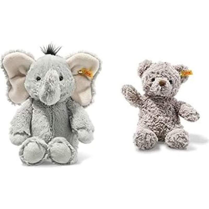 Steiff Cuddly Toy Elephant Ella, mielas pliušinis žaislas, berniukams, mergaitėms ir kūdikiams nuo 0 mėnesių, Soft Cuddly Friends, pliušinis žaislas 30 cm, pilkas, 064982 & 113413 Soft Cuddly Friends Honey Teddy Bear, pilkas, 18 cm