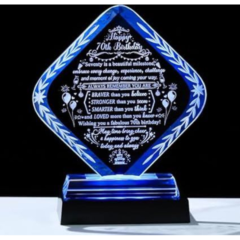 Movdyka Geschenk zum 70. Geburtstag für Damen und Herren, mit LED-Lichtsockel, "Happy 70th Birthday", Geschenkideen für Freunde, Kristall, 70 Jahre alt, Geburtstagsschmuck, Andenken