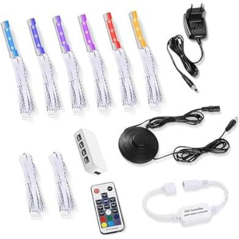 LED stiklo krašto apšvietimas, 6 RGB stiklo grindų apšvietimas su nuotolinio valdymo pulteliu, spalvą keičiantis spintelės apšvietimas su kojiniu jungikliu, vitrinos apšvietimas, šviesa vitrinai, stiklo dekoracijos