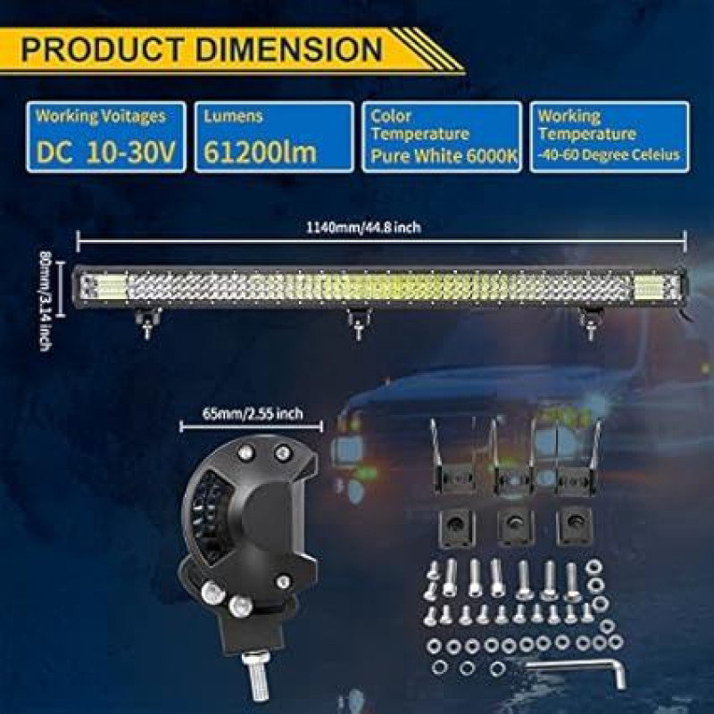 RIGIDON 45 colių 115 cm 612 W LED šviesų juosta su laidais 12 V 6000 K baltos spalvos papildoma priekinių žibintų juosta Spot Flood Combo Beam darbo šviesų juosta visureigiams Offroad ATV UTV Traktoriui sunkvežimiui 4x4 automobiliui