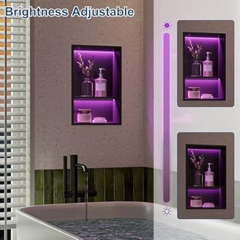 Wandnische Dusche Edelstahl mit RGB LED-Licht, Doppel-Duschnische Schwarz Lagerung mit Fernsteuerung für Badezimmer, 45x30 cm