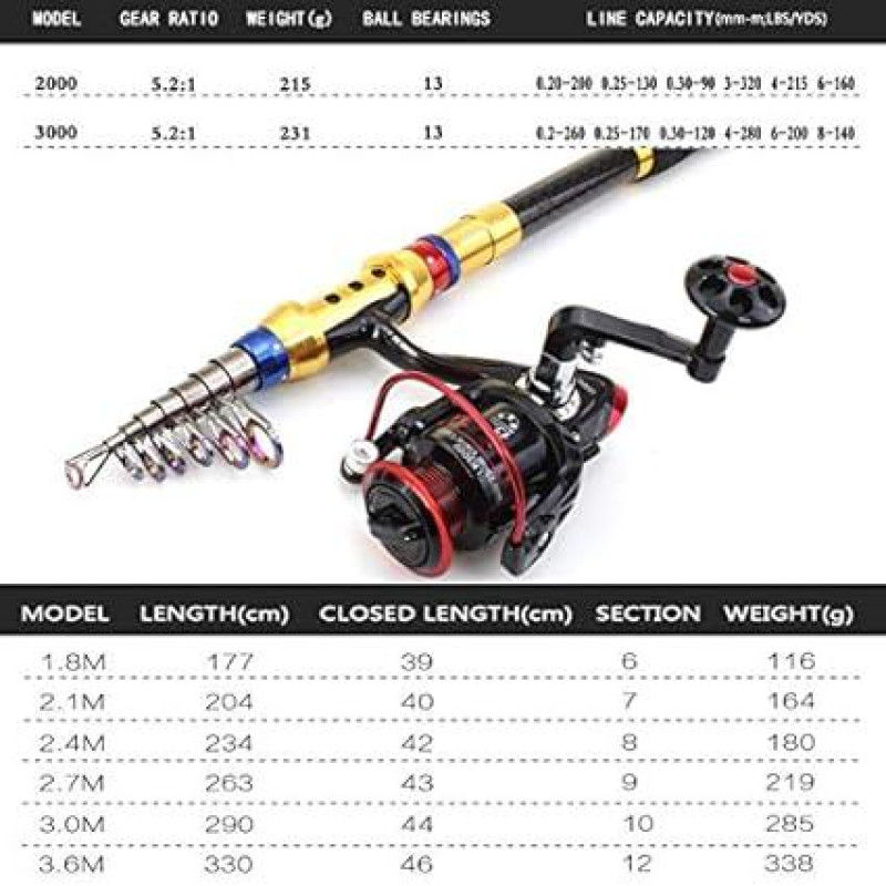 H/A ZYYDD Neue 1,8 mln. 3,6 m Kohlenstoffspinne Angelrute Teleskopstab + 12BB Angelrolle Kombination, Ufer Wurf Angelrolle + Bag Set Angelausrüstung ZYYDD (Spalva : Strypas + ritė + krepšys, Dydis : 3,6 m)
