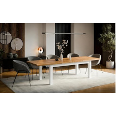 SAM Noah valgomojo stalas 200 x 100 cm Real Wane, valgomojo stalas iš akacijos medienos, riešutmedžio spalvos ir masyvo, baltas U formos rėmas, Wane, stalas su 26 mm stalviršiu
