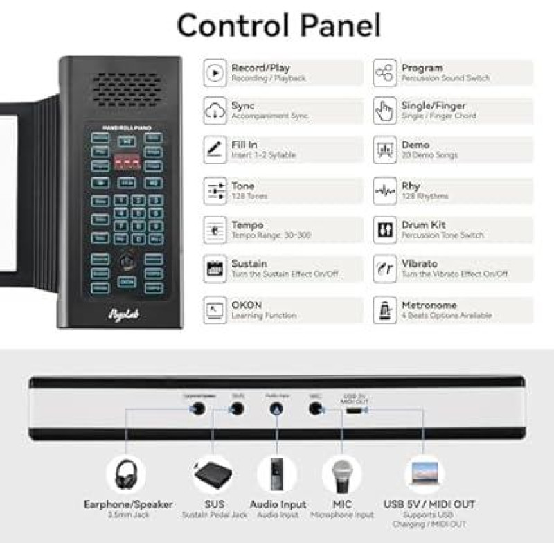 88 klavišų Roll Up klaviatūros fortepijonas, įkraunamas Roll Up fortepijonas su 20 demonstracinių įrašų / 128 tonais / 128 ritmais / ausinių lizdu / Bluetooth / būgnų rinkiniu, sulankstomas kelioninis Handroll fortepijonas visiems