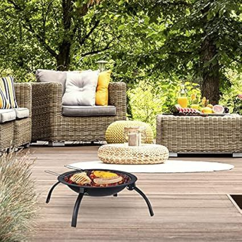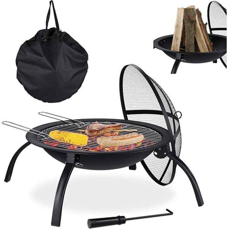 "Relaxdays XL Brazier" ugnies dubuo, kepsninės grotelės, pokeris, apsauga nuo kibirkščių, sodas, terasa, ugniakuras Skersmuo 56,5 cm, juoda, juoda