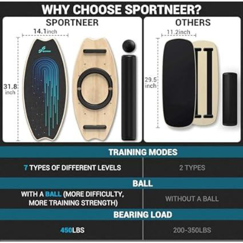 Balansavimo lenta medinė, Sportneer patalpų lenta riedlentė, patalpų banglentė, Trickboard ir balansavimo lenta vaikams ir suaugusiems