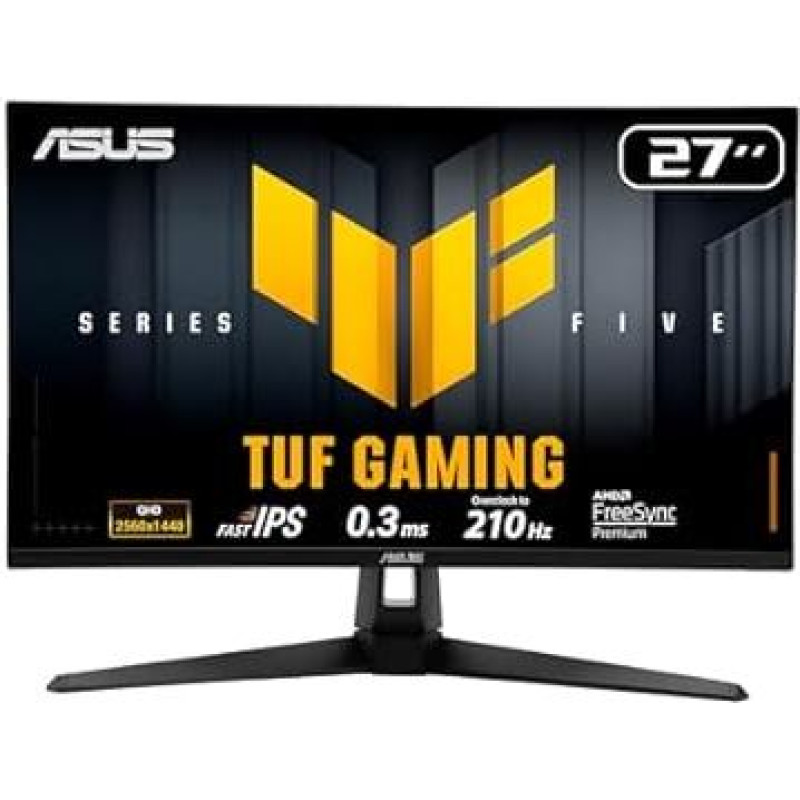 ASUS TUF Gaming VG27AQ5A QHD monitorius (27 coliai, 2560 x 1440, 210 Hz (OC), Fast IPS, ELMB Sync, 0,3 ms atsako laikas, garsiakalbis, HDMI, DisplayPort, Gaming AI)