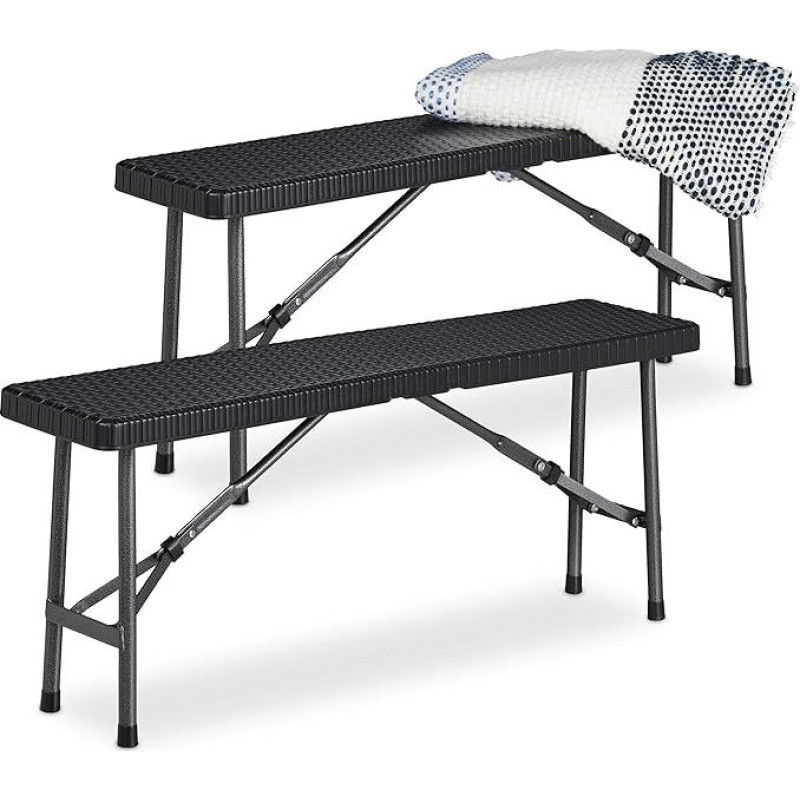 "Relaxdays" suoliukas prie alaus, 2 vnt., sulankstomas suoliukas terasai ir sodui, plastikinis, stovyklavimo suoliukas, HBT: 42 x 100 x 25 cm, juodas