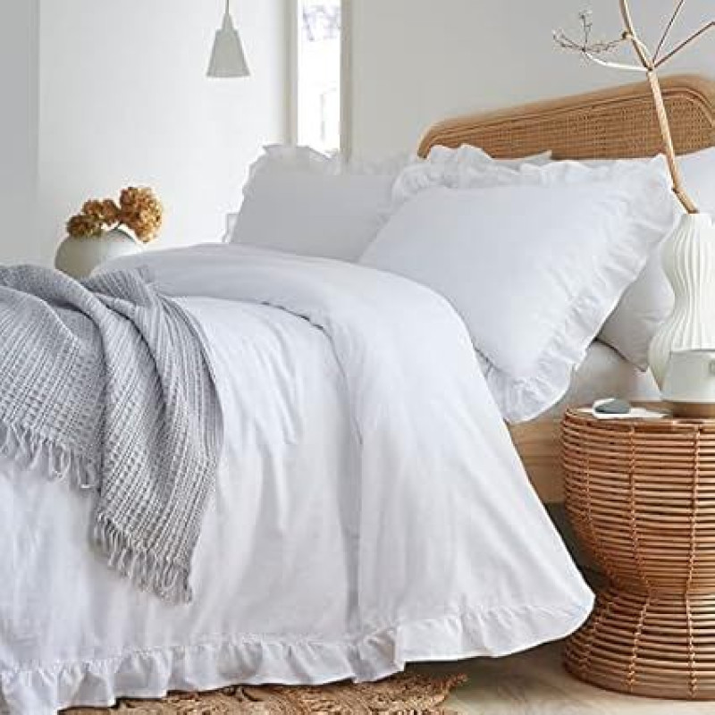 "Appletree" baltas užvalkalas su raukiniais - dvivietis (200 x 200 cm) - minkšta 100 % medvilnė - 2 užvalkalai pagalvėms - baltas užvalkalas su raukiniais - baltas užvalkalas su raukiniais - balta spalva