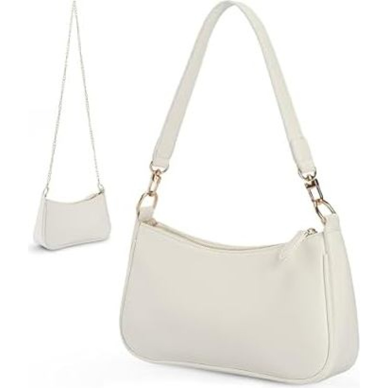 Maža moteriška rankinė - Maža moteriška rankinė | Nuimama grandinėlė ir dirželis per petį | PU oda, juoda, kasdienio naudojimo (26 x 7 x 15 cm), balta, S, šiuolaikiška