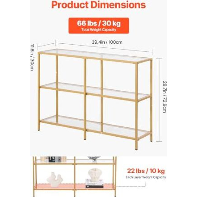 VEVOR 3 pakopų konsolinis staliukas Modernus stačiakampis prieškambario staliukas (100 x 30 x 72,9 cm) su grūdinto stiklo stalviršiu, šoninis staliukas su pakreipimo apsauga, skirtas svetainei, prieškambariui, prieangiui, įėjimui, fojė, auksinis