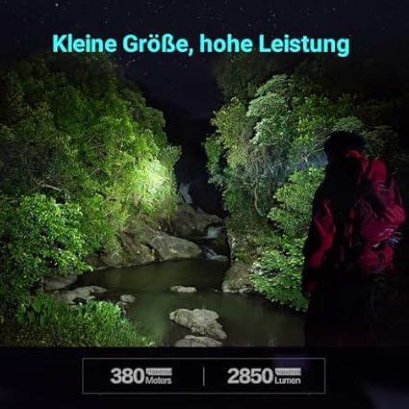 LOOP GEAR SK05 LED žibintuvėlis 2850 liumenų, USB-C greitasis įkrovimas, 6000 mAh energijos bankas, IP68, daugiafunkcinis RGB (SOS / įspėjamoji šviesa), magnetinis pagrindas + spaustukas, taškinis / potvynio žibintas stovyklavimui, lauke, žvejybai (juodas