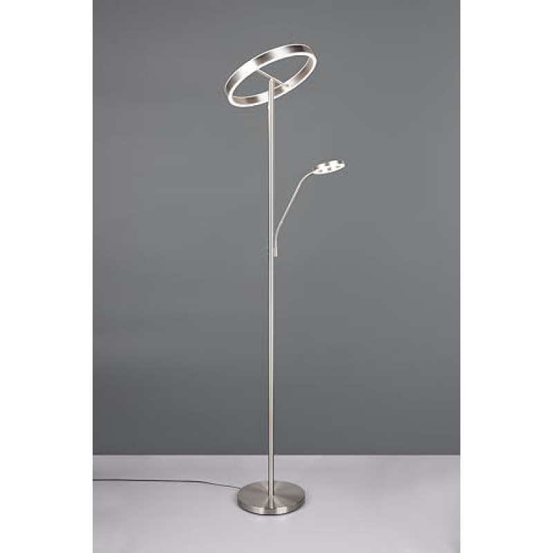 Trio Leuchten Willis 449510207 LED grindų lempa Metalinis nikelio matinis 39 + 5,5 W LED šviesos diodų reguliuojamos spalvos reguliuojamas apšvietimas Sidabrinė / juoda