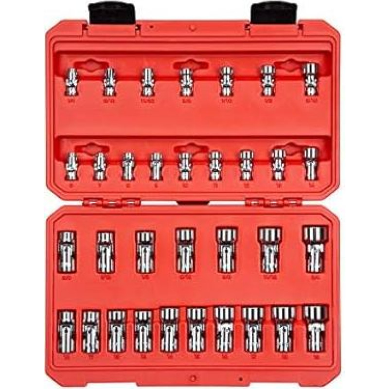 TEKTON SHD99301 1/4, 3/8 colių šešiakampių universalių galvučių rinkinys su dėklu, 33 dalys (1/4-3/4 colio, 6-19 mm)