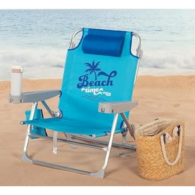 AKTIVE sulankstomas ir atsilenkiantis paplūdimio krėslas su 5 padėtimis, matmenys 53 x 58 x 80 cm, maksimalus svoris 110 kg, aliuminio ir tekstileno medžiaga, paplūdimio krėslai su apsauga nuo virtimo (62286)