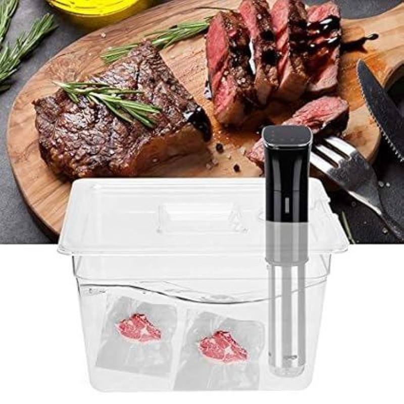 "Zerodis" 11 l talpykla su dangčiu, laikikliu ir įmaute, pilnas "Sous Vide" priedų rinkinys, "Sous Vide" virimo maišeliai, "Sous Vide" maisto maišeliai, "Sous Vide" virimo talpyklos