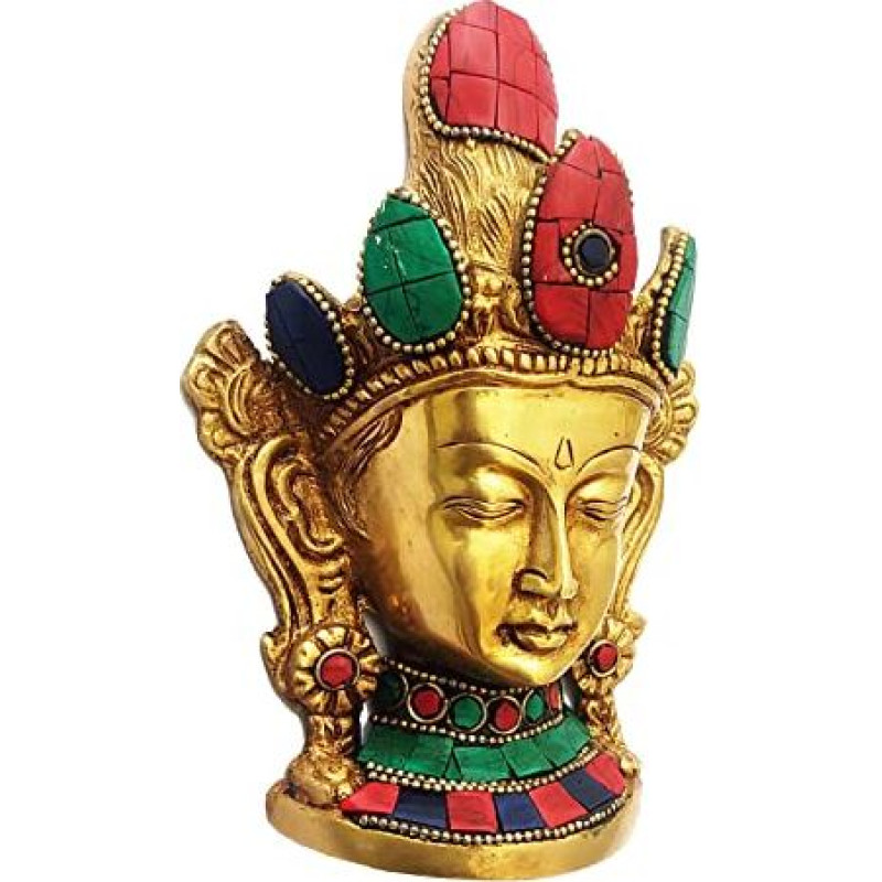 Purpledip Budistų deivės Taros kaukė (pakabinama ant sienos), grynas žalvaris su brangakmeniais (10649)
