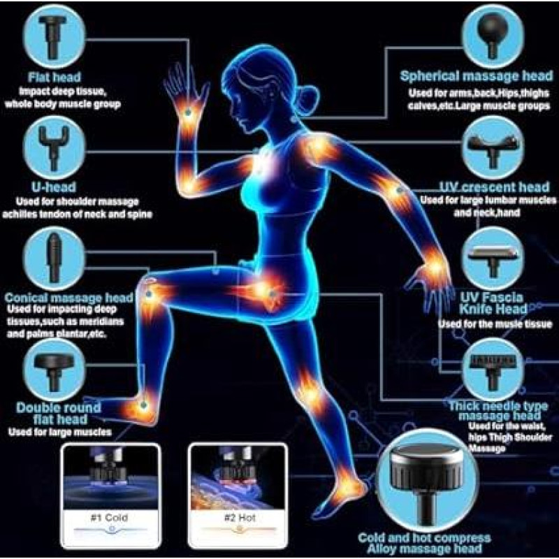 Elektrinis masažo pistoletas su karščio ir šalčio galvutėmis, kišeninis giliųjų audinių fascijų pistoletas, nešiojamasis smūginis rankų masažuoklis, mažas ir tylus, 9 galvutės kūnui atpalaiduoti, violetinės spalvos