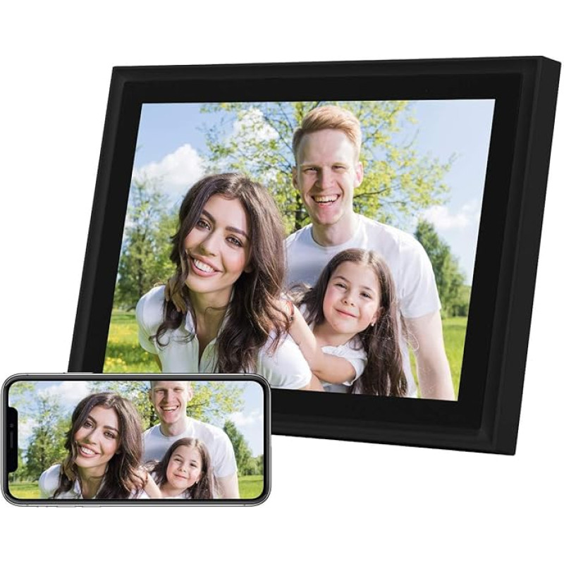 "AEEZO WiFi" skaitmeninis nuotraukų rėmelis su 10 colių jutikliniu ekranu, FHD 2K ekranu, išmaniuoju nuotraukų rėmeliu ir 16 GB atmintimi, lengvai nustatomas dalijantis nuotraukomis ir vaizdo įrašais, automatiškai pasukamas (juodas)