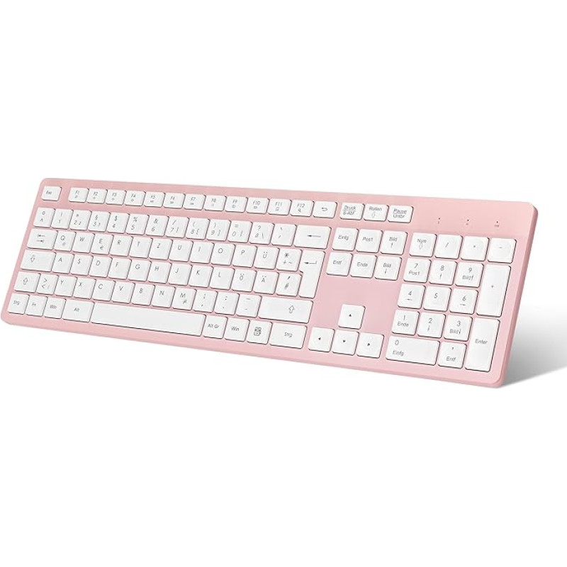 "LeadsaiL K786" belaidė klaviatūra "QWERTZ German" - 2,4 GHz USB, daugialypės terpės klavišai, tyli, skirta kompiuteriui, nešiojamajam kompiuteriui, "Windows" (rožinė)