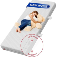 Good body adjustment: point-elastic cold foam mattress with perfectly coordinated hardness for children. The mattress adapts well to the child's body in any position. Optimal air circulation: the breathable quality foam and the high-quality cover ensure good air circulation, antibacterial and suitable for allergy sufferers. European quality product: we produce in the heart of Europe with 50 years of experience in the production of baby and children's mattresses. BEST SLEEP FOR YOUR CHILD: Thanks to heat dissipation, good support and high air permeability, this baby and children's mattress meets all the requirements for healthy sleep. › See more product details; Product description Product description The fact that good mattresses must be expensive was revealed a long time ago as a fairy tale. We have developed a very good children's base mattress in several sizes that meets our own high requirements. It is breathable, adapts very well to the child's body thanks to point elasticity, and of course it is easy to clean when it goes wrong. It is suitable for side, stomach and back sleepers, regulates moisture, dissipates heat and offers our children an all-round restful sleep. So that the nights are quiet and the morning can be started with full energy. Kids Collective. When kids love to sleep. OUR PROMISE: We produce in the middle of Europe and carry out regular and strict quality controls. We have known our partners personally for many years. We take customer feedback to heart and continue to develop our products. From parents to parents. We want our children to have a restful sleep and start every morning with maximum energy. This is what this mattress is made for. Safety Warning Please note the care instructions for the cover and use only the recommended detergents. Keep the mattress in a dry, well-ventilated place. Avoid contact with open fire or hot objects. If you have any allergic reactions or intolerances to the materials of the mattress, consult a doctor immediately.; Product description Product description The fact that good mattresses must be expensive was revealed a long time ago as a fairy tale. We have developed a very good children's base mattress in several sizes that meets our own high requirements. It is breathable, adapts very well to the child's body thanks to point elasticity, and of course it is easy to clean when it goes wrong. It is suitable for side, stomach and back sleepers, regulates moisture, dissipates heat and offers our children an all-round restful sleep. So that the nights are quiet and the morning can be started with full energy. Kids Collective. When kids love to sleep. OUR PROMISE: We produce in the middle of Europe and carry out regular and strict quality controls. We have known our partners personally for many years. We take customer feedback to heart and continue to develop our products. From parents to parents. We want our children to have a restful sleep and start every morning with maximum energy. This is what this mattress is made for. Safety Warning Please note the care instructions for the cover and use only the recommended detergents. Keep the mattress in a dry, well-ventilated place. Avoid contact with open fire or hot objects. If you have any allergic reactions or intolerances to the materials of the mattress, consult a doctor immediately.; Product description The fact that good mattresses must be expensive was revealed a long time ago as a fairy tale. We have developed a very good children's base mattress in several sizes that meets our own high requirements. It is breathable, adapts very well to the child's body thanks to point elasticity, and of course it is easy to clean when it goes wrong. It is suitable for side, stomach and back sleepers, regulates moisture, dissipates heat and offers our children an all-round restful sleep. So that the nights are quiet and the morning can be started with full energy. Kids Collective. When kids love to sleep. OUR PROMISE: We produce in the middle of Europe and carry out regular and strict quality controls. We have known our partners personally for many years. We take customer feedback to heart and continue to develop our products. From parents to parents. We want our children to have a restful sleep and start every morning with maximum energy. This is what this mattress is made for. Safety Warning Please note the care instructions for the cover and use only the recommended detergents. Keep the mattress in a dry, well-ventilated place. Avoid contact with open fire or hot objects. If you have any allergic reactions or intolerances to the materials of the mattress, consult a doctor immediately.