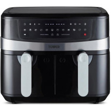 "Tower" T17088 "Vortx" 9 l karšto oro keptuvė su dviem krepšiais ir išmaniąja apdaila - oro keptuvė su 2 kameromis - 2600 W - juoda