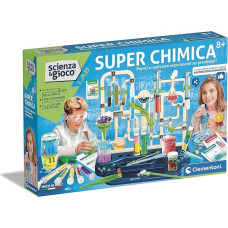 "Clementoni" mokslo ir žaidimų laboratorija - "Super chemija", chemijos laboratorija, moksliniai eksperimentai, mokslo laboratorija 8 metams, instrukcija italų kalba, pagaminta Italijoje, įvairiaspalvė, 36 x 9 x 53 cm
