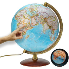 "National Geographic" šviečiantis vadovų stiliaus gaublys, 30 cm gaublys su tvirtu pagrindu ir metaliniu dienovidiniu, 2023 m. fizinio/politinio žemėlapio nuotrauka su LED šviesa, dabartinio Vokietijos žemėlapio vaizdas