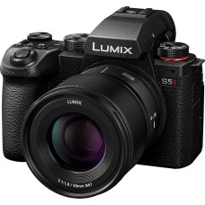 "Panasonic" LUMIX DC-S5 II veidrodinis viso kadro fotoaparatas su 50 mm F1,8 objektyvu, 4K 60p ir 6K 30p, atlenkiamas ekranas, "WiFi", hibridinis fazinis AF su 779 laukais, tik korpusas, aktyvioji IS, juodas