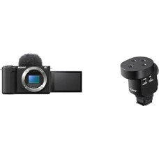 "Sony" rinkinys "Alpha ZV-E10" | APS-C veidrodinis beveidrodis fotoaparatas su keičiamais objektyvais, skirtas vaizdo įrašams (pasukamas ekranas, 4K vaizdo įrašai), juodas ECM-S1 | Belaidis mikrofonas su stovu ECM-S1