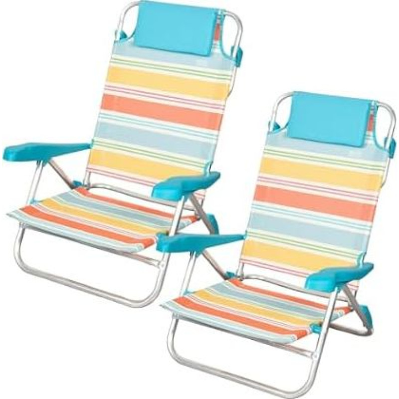 AKTIVE Santorini Santorini 62419 Sulankstomos paplūdimio kėdutės 47 x 49 x 82 cm 7 padėtys Aliuminio ir tekstileno dryžuotos įvairiaspalvės su pagalvėlėmis ir rankenomis