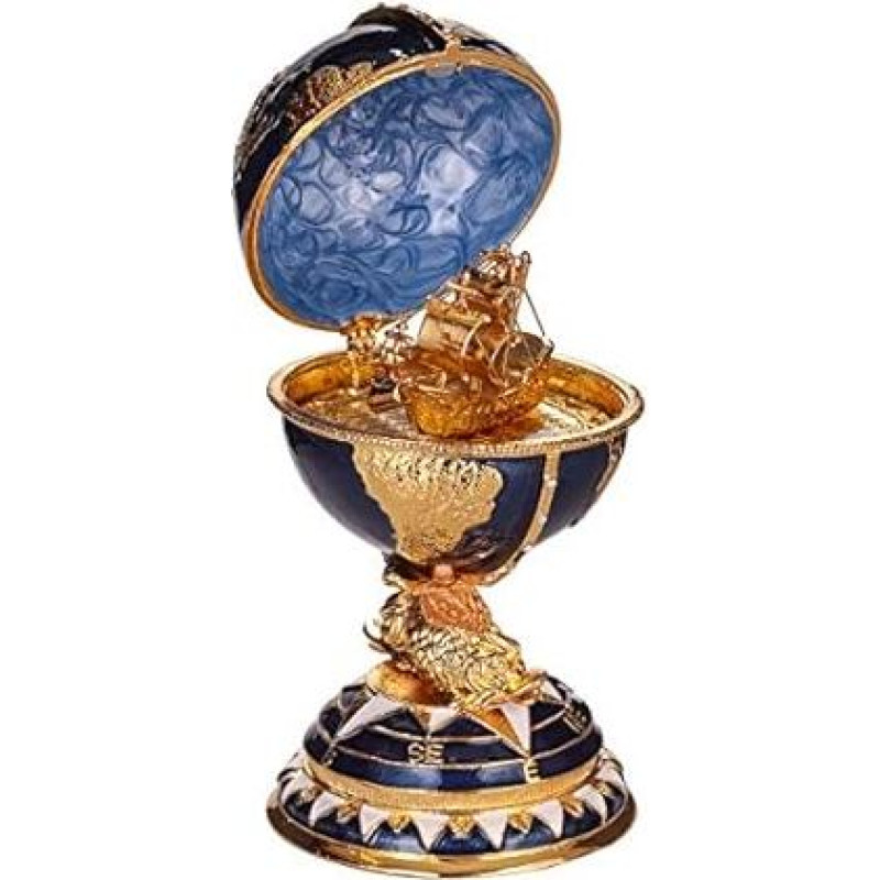 danila-souvenirs Faberge Style Egg / Jewellery Box Globe with Ship 14.5 cm Blue