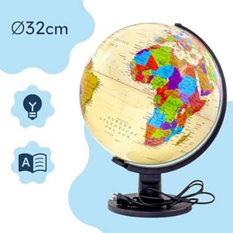 Raylu Paper - Illuminated and Rotating Globe Cartography and Meridian Spain World Dial (Cream, 32 cm)